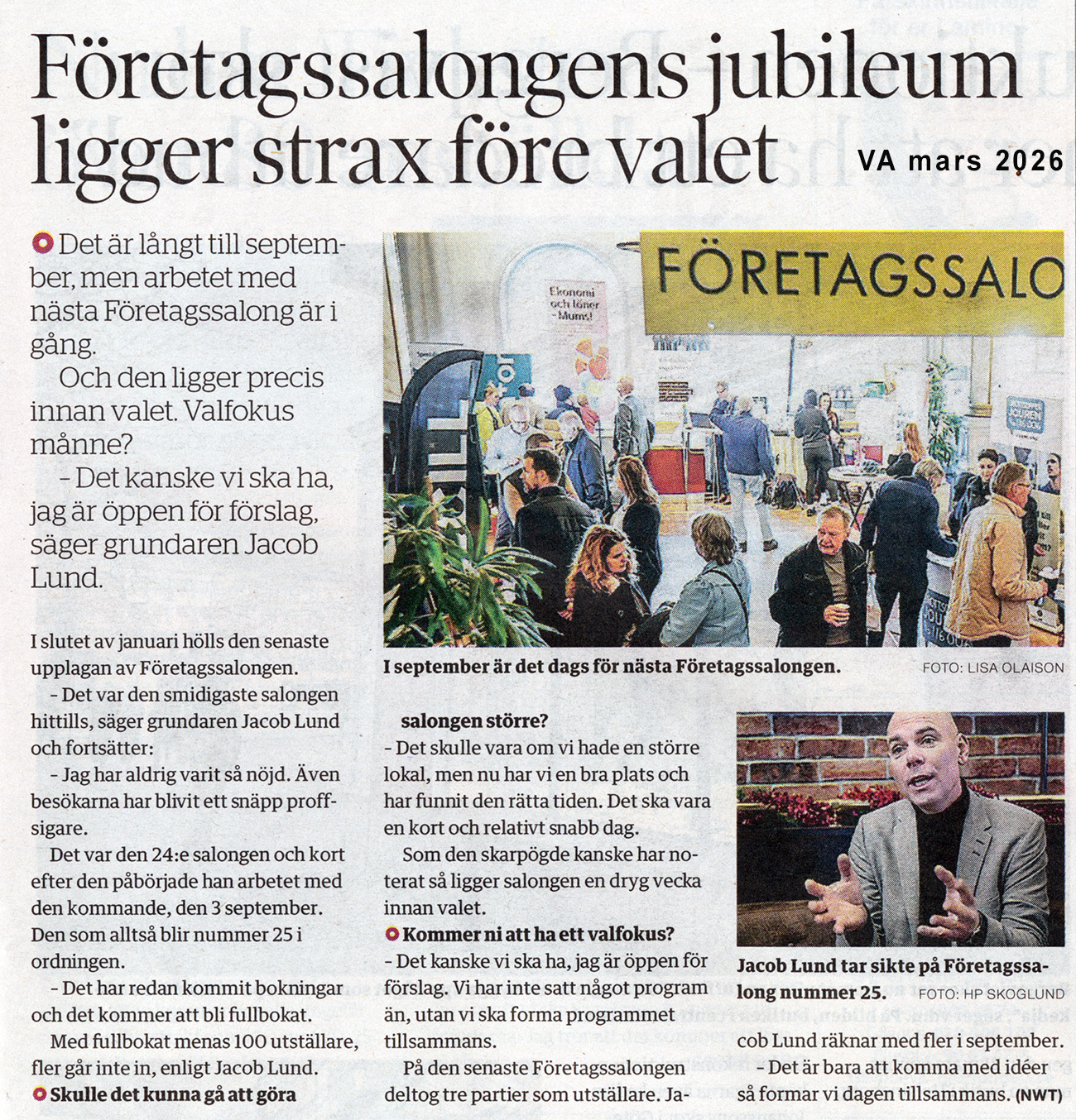 Ett urval från media i samband med Företagssalongen: